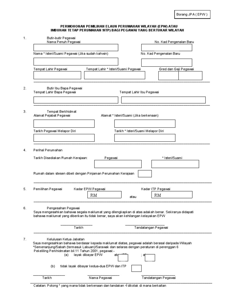 Imbuhan tetap perumahan (itp) / elaun perumahan wilayah (epw) 1. Maklumat di atas, pegawai adalah berasal daripada wilayah *semenanjung/ sabah (termasuk labuan). Surat pekeliling perkhidmatan bil.4 tahun 2009. Elaun pindah rumah boleh dibuat sekiranya kita berpindah ke rumah yang dibeli menggunakan pinjaman kerajaan. Elaun wilayah (pekeliling perkhidmatan perkhidmatan bil.